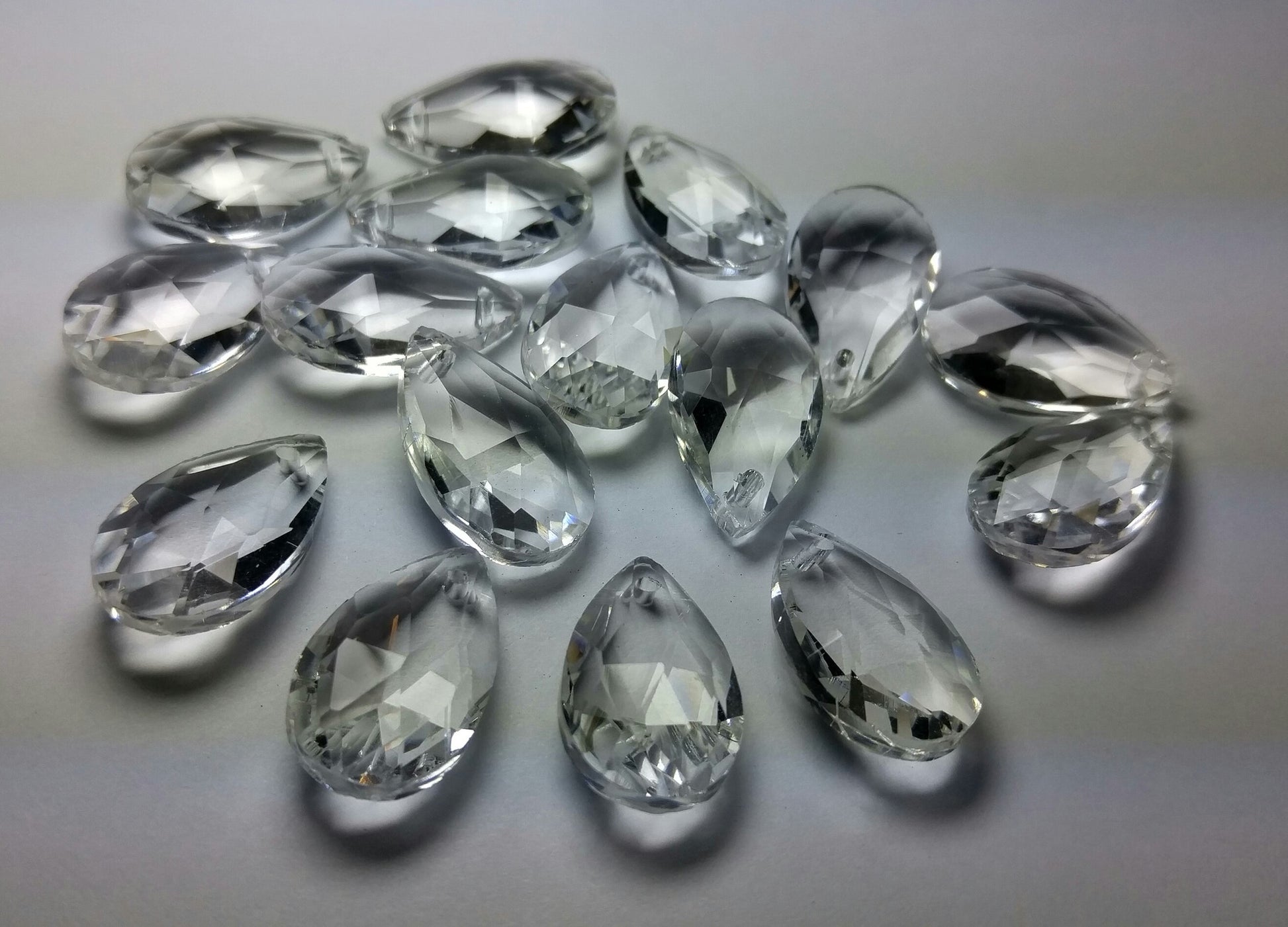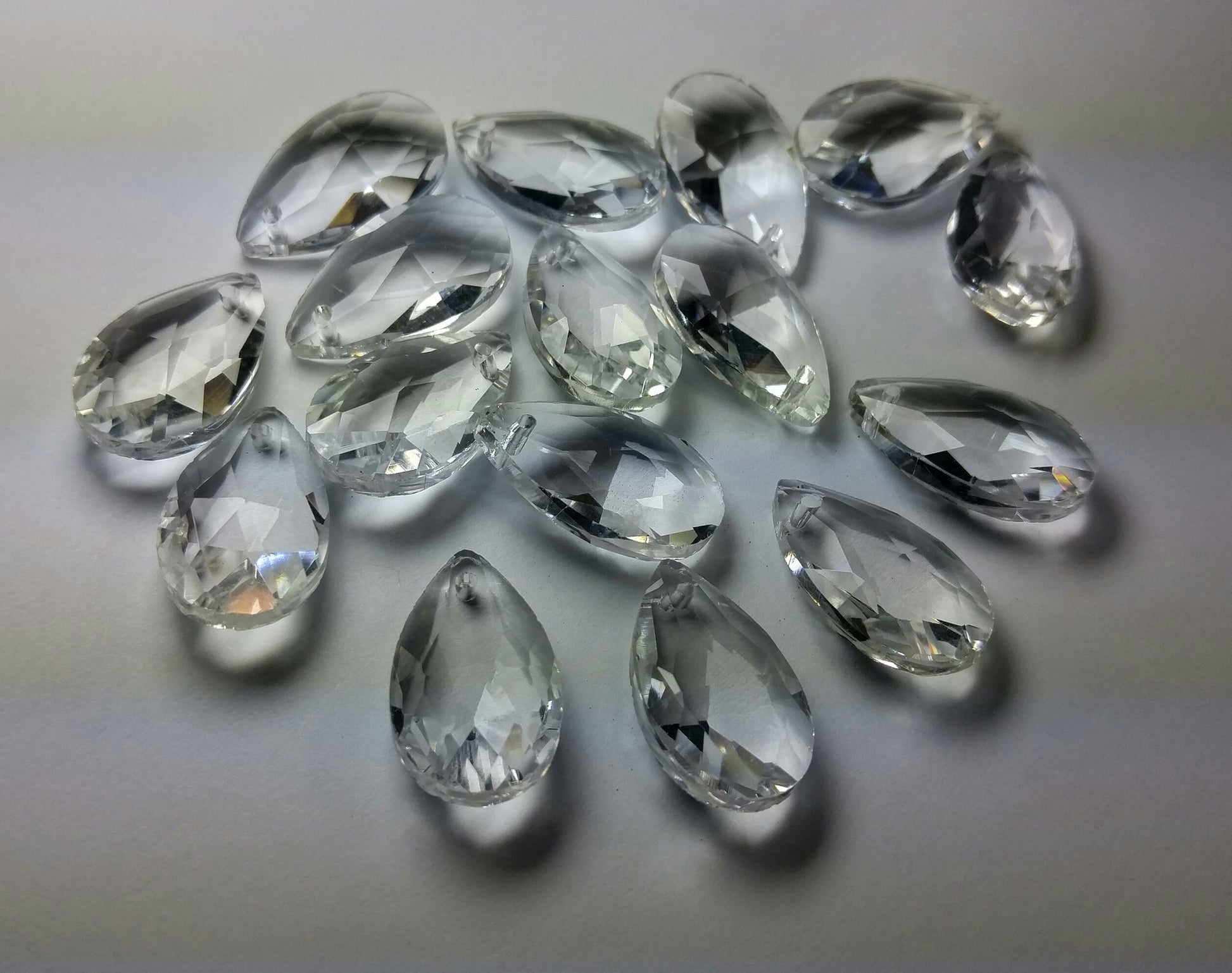 16 piece faceted crystal glass drop set. 20x10mm. These are stunning drops with epic sparkle! Use for jewelry or other crafty projects.