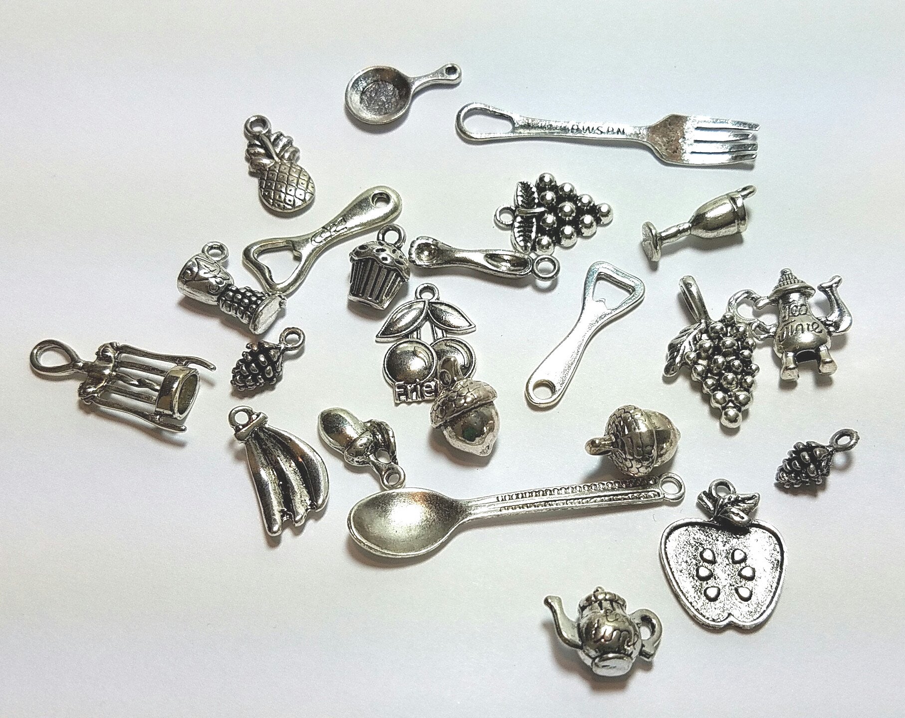 This lot is for an awesome array of food/kitchen inspired charms. 20 charms included.