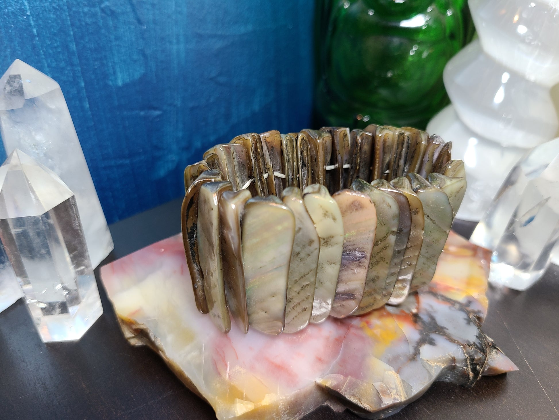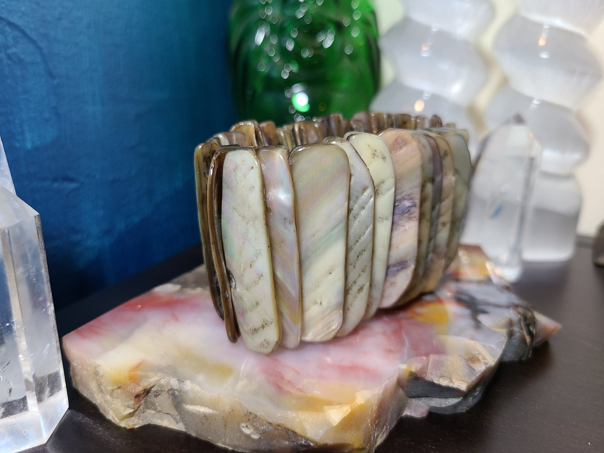 Beautiful thick and tons of character, black lip shell chunky bracelet.