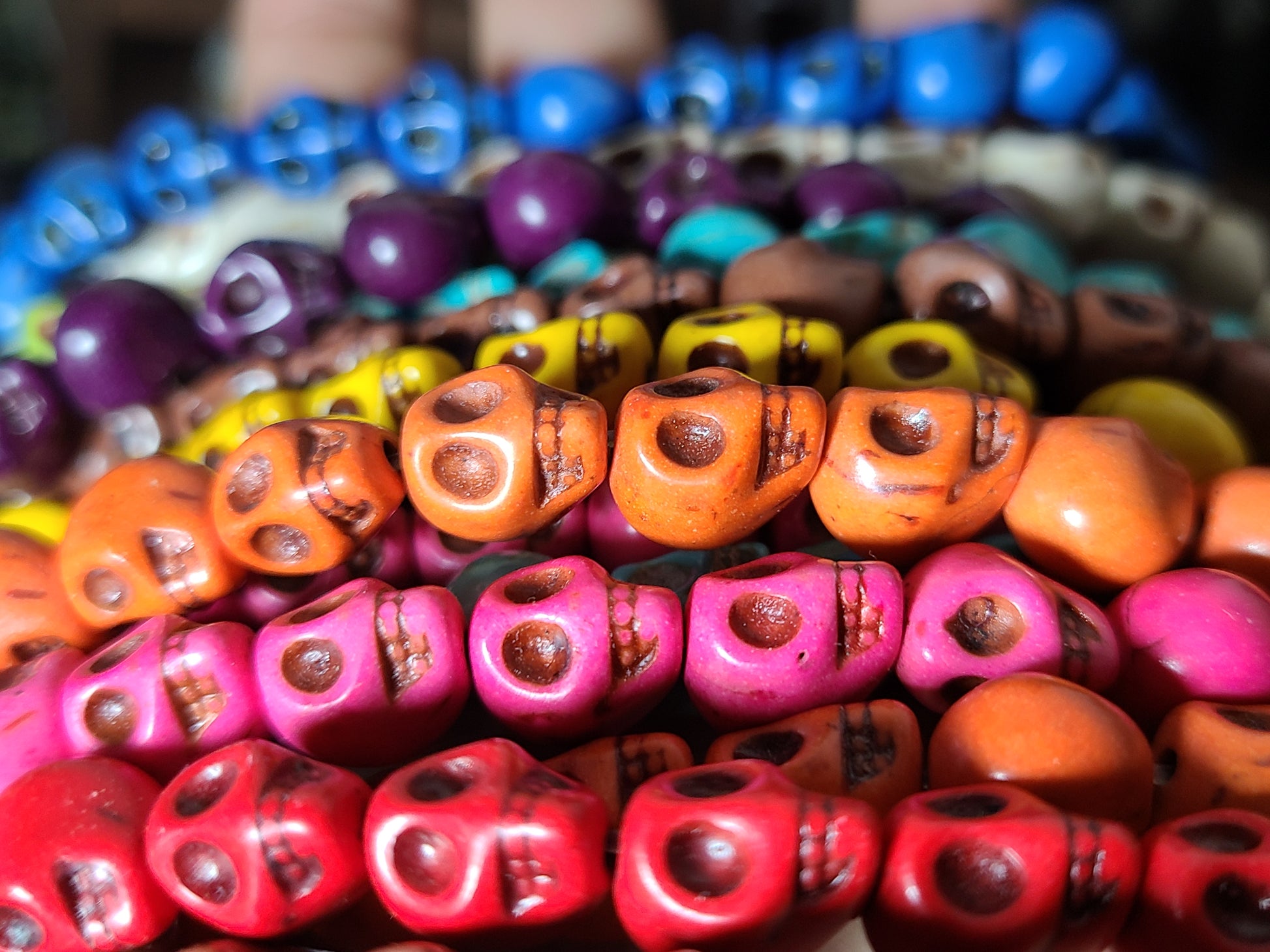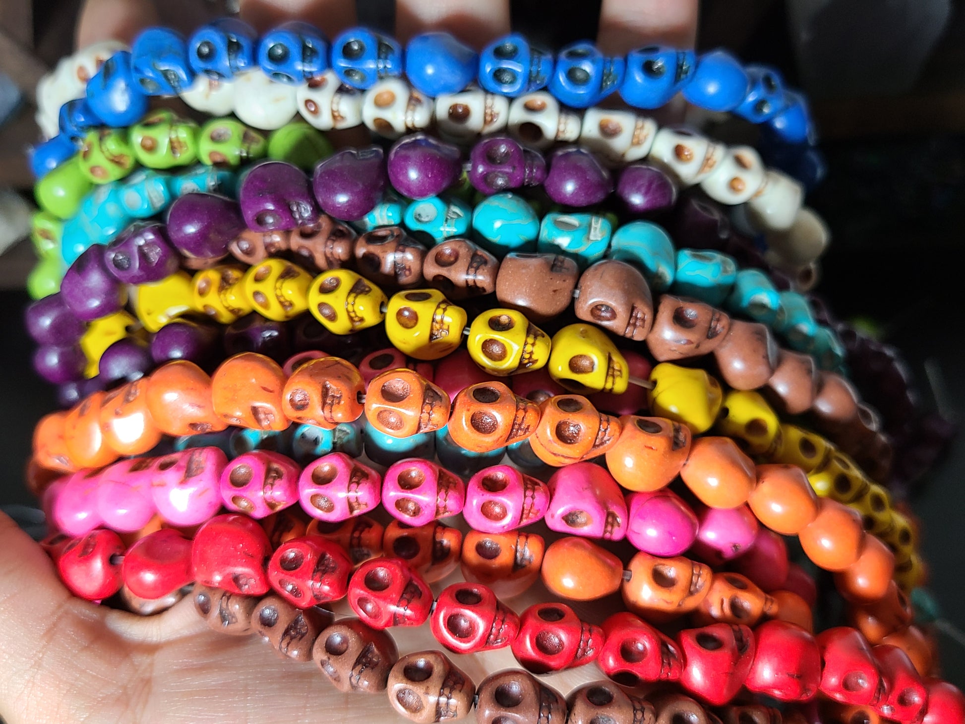 One full strand of dyed Magnesite skull shaped beads. Choose your color.