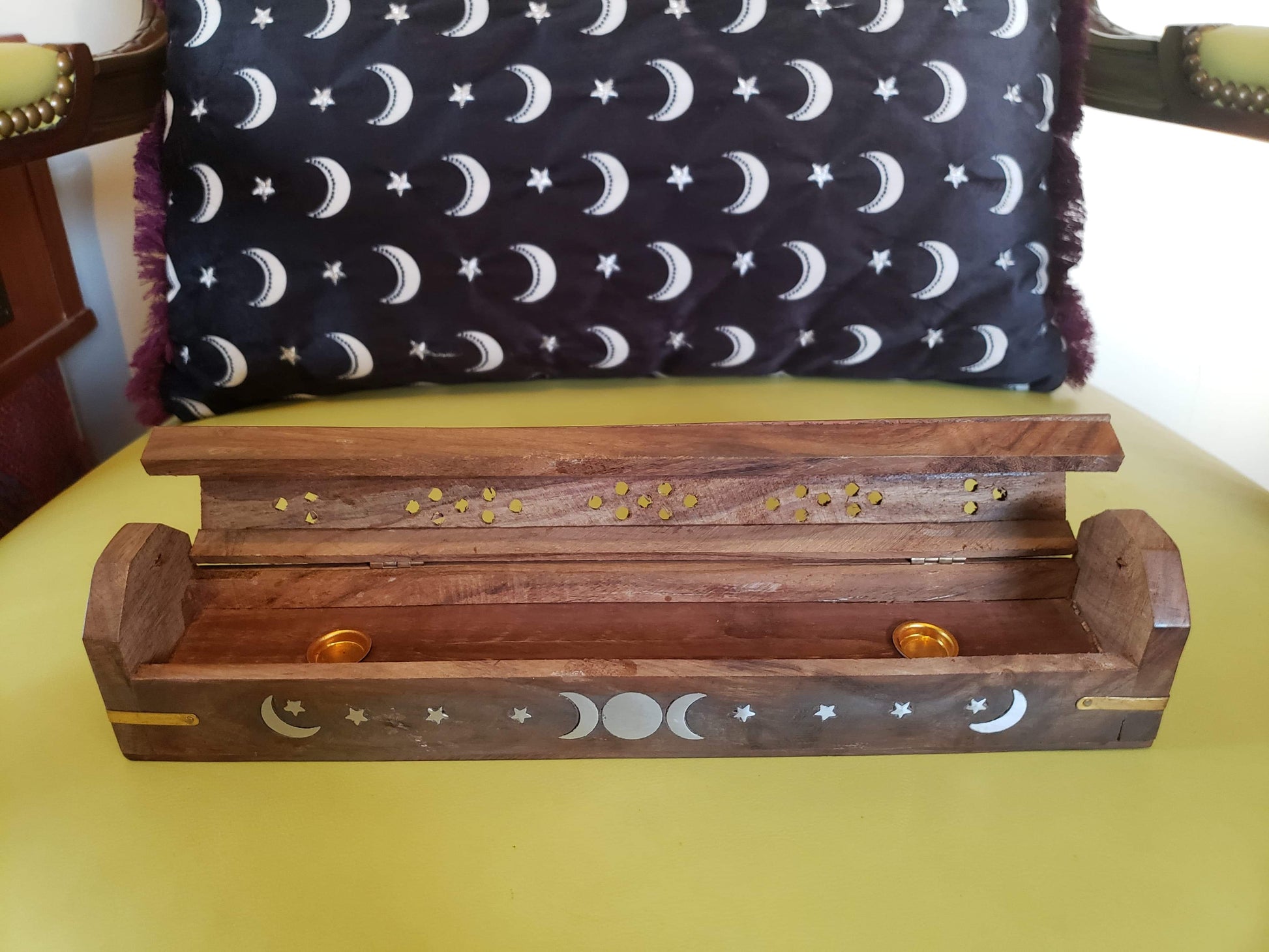 Silver Triple Moon Wood Coffin Incense Burner